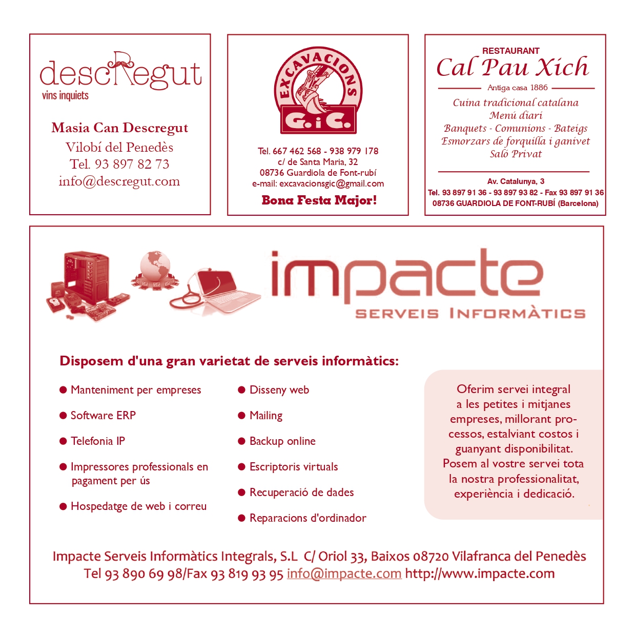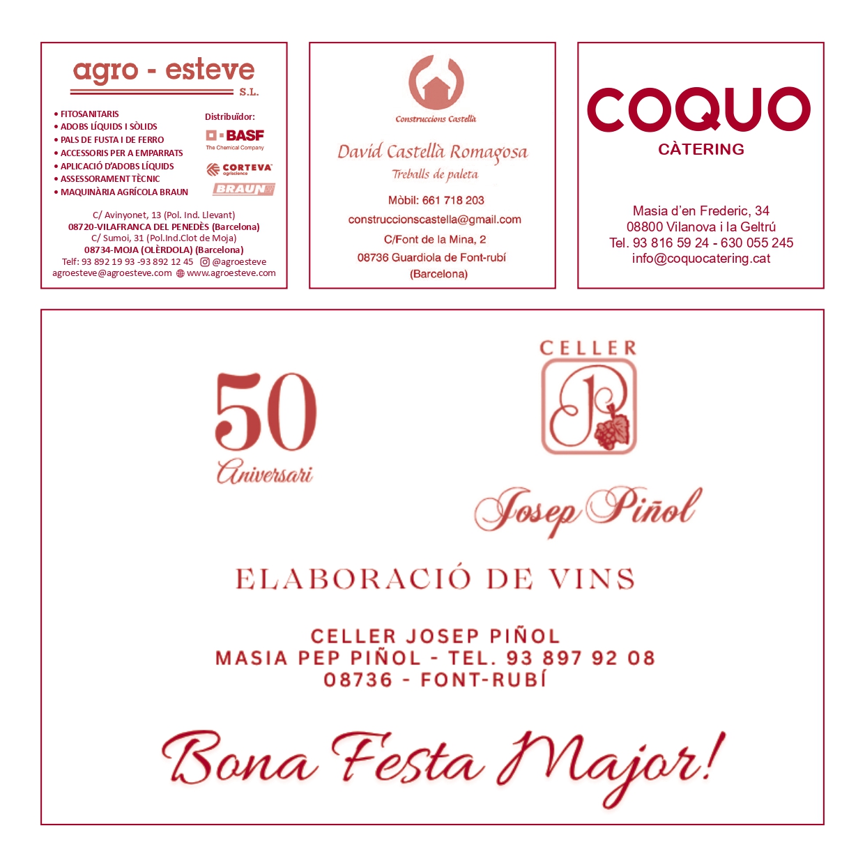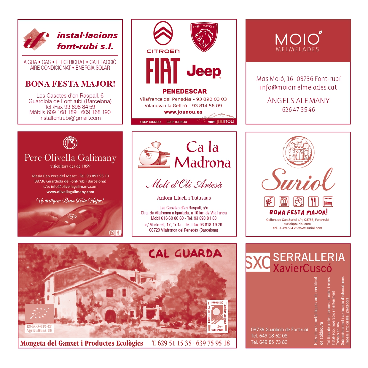 L’Ajuntament de Font-rubí i els administradors/es de la Festa Major de Guardiola 2025 agraeixen la col·laboració de totes les empreses, comerços i particulars que han fet possible la celebració.
